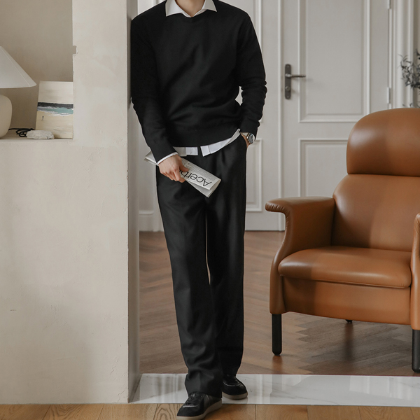 [HOMME] デーリー カシミア ビスコース ラウンドネック シグネチャー ニット