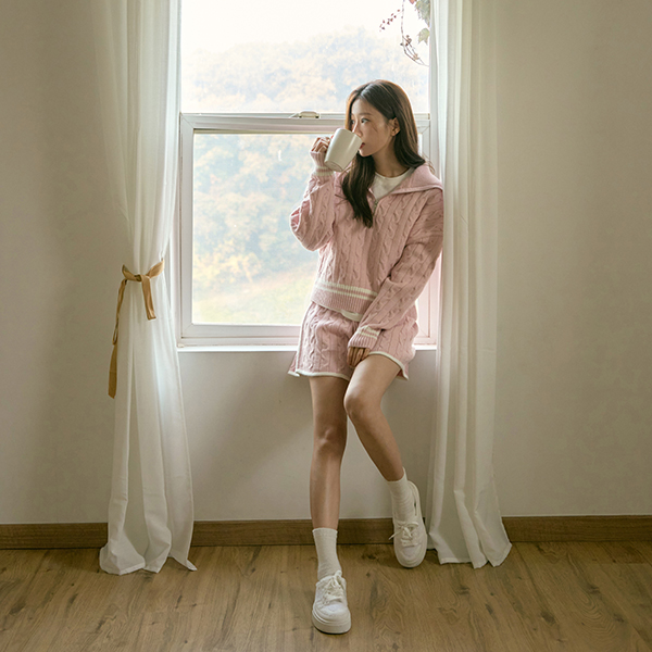 着心地のいい セーラー カラー ジップアップ&ニット パンツ (セット)