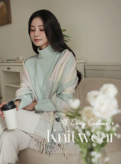 コージー カシミア ウール ハイネック ニット