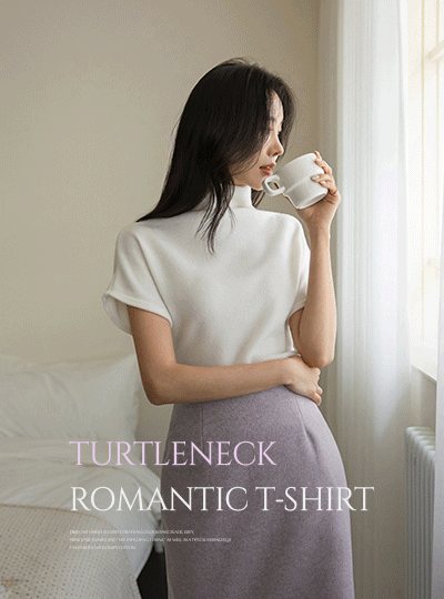 ロマンチック カラー ピーチナッピング ラグラン タートルネック ティーシャツ