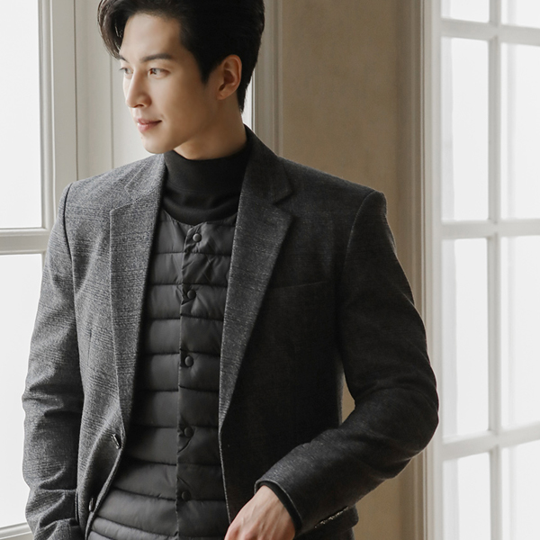 [HOMME] プレミアム ウール カシミア 호시 ステッチ シングル コート (キルティング裏地)