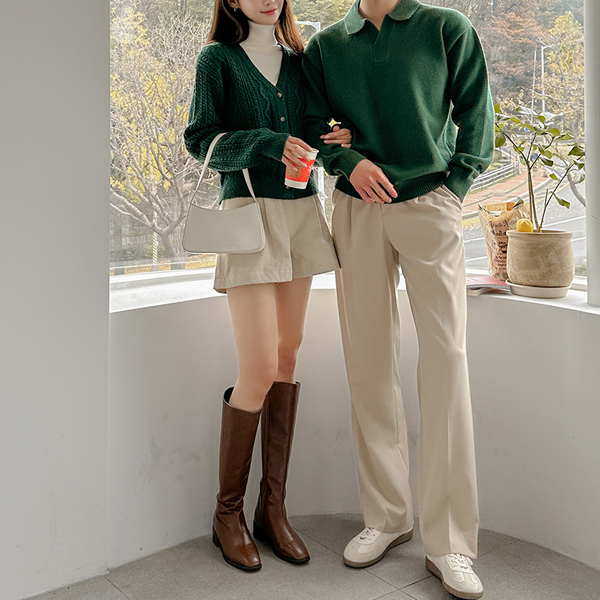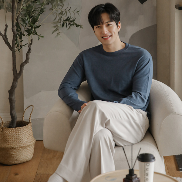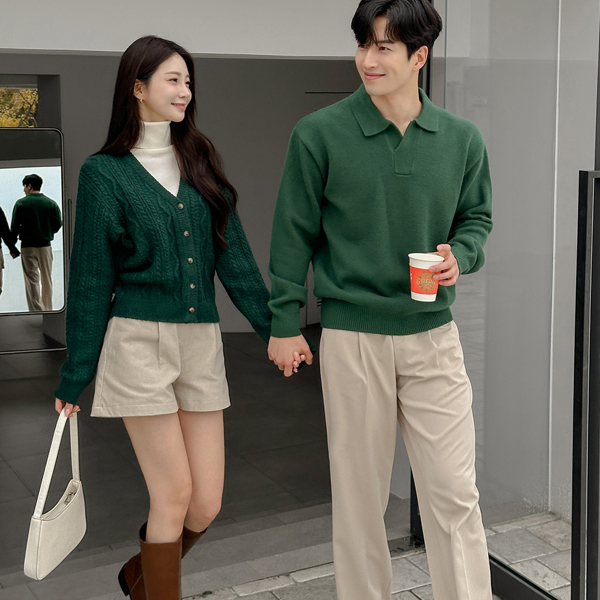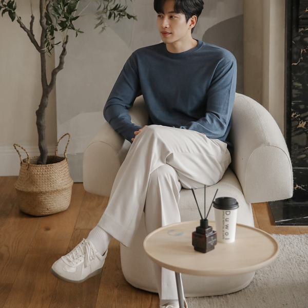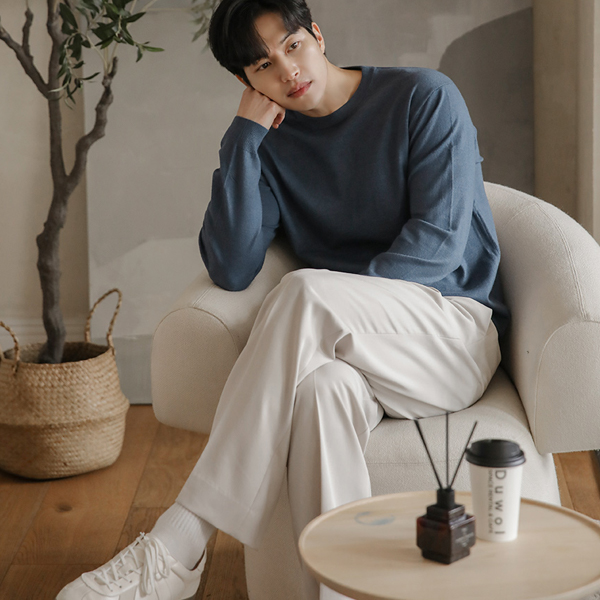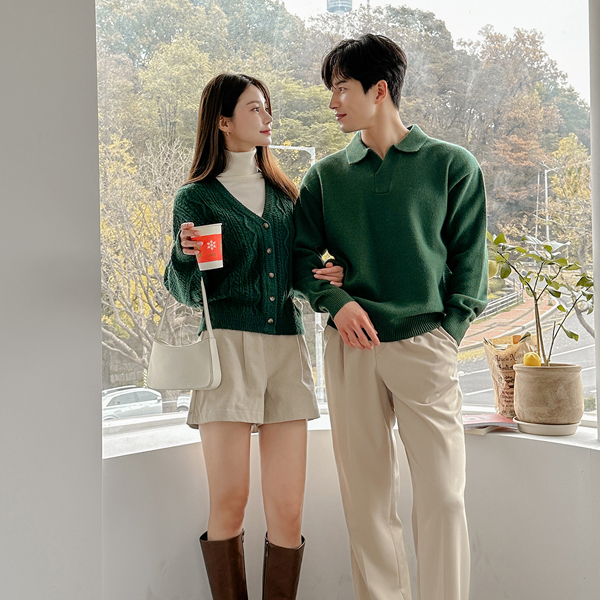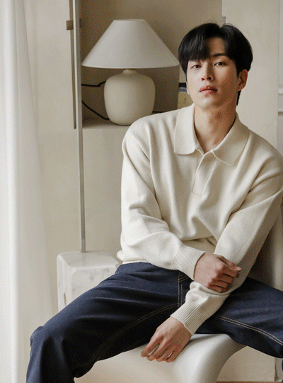 [HOMME] 分厚い シンプル モダール オープン カラー ニット