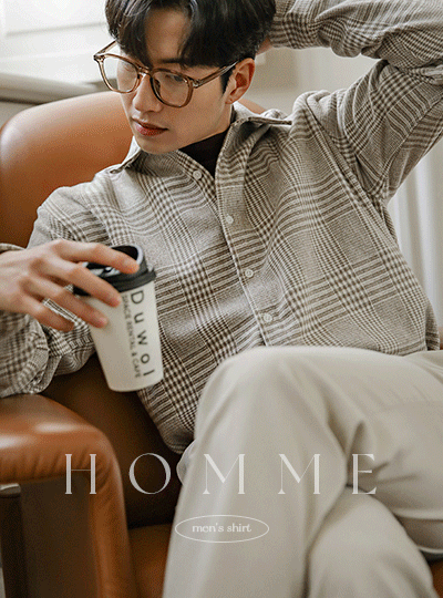 [HOMME] ウインター グレン チェック ウール シャツ