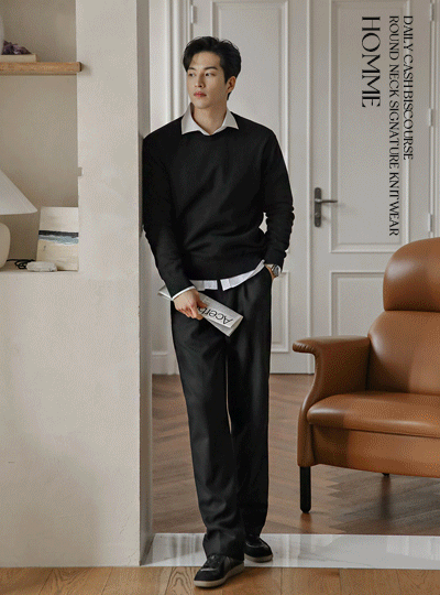 [HOMME] デーリー カシミア ビスコース ラウンドネック シグネチャー ニット