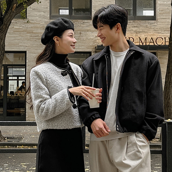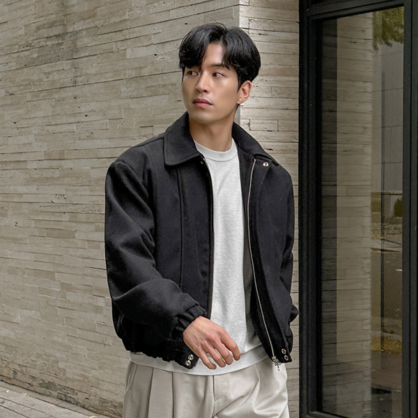 [HOMME] 分厚い シングル カラー 切開 ブルゾン ジャケット (キルティング裏地)