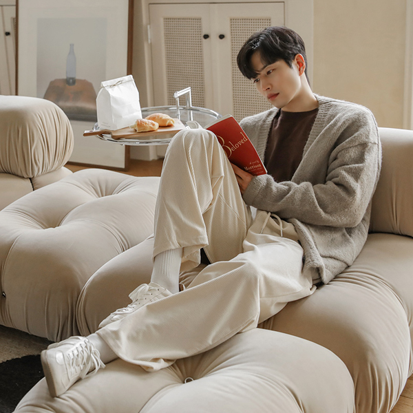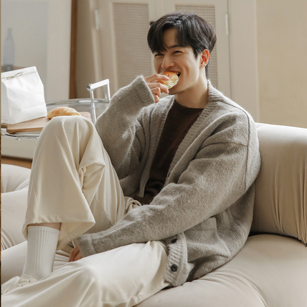 [HOMME] ふわふわ ブイネック ウール カシミア ミニマル カーディガン