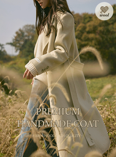 プレミアム ダブル ボタン ウール ハンドメード ロング コート