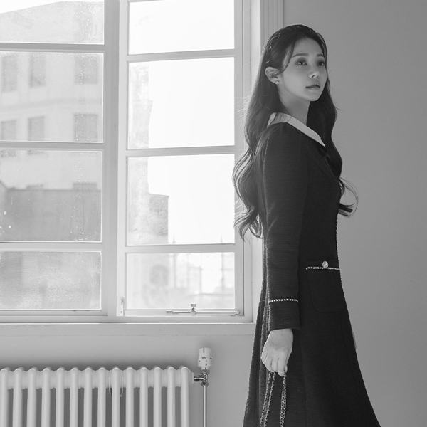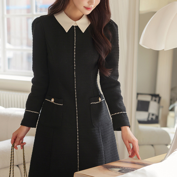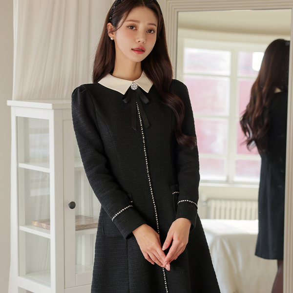 ロマンチック 配色 カラー 宝石 リボン ブローチ Aライン ワンピース