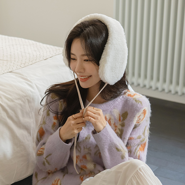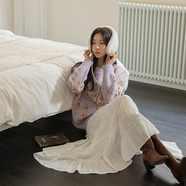 ほっそりした 花柄 ルーズフィット ウール ニット