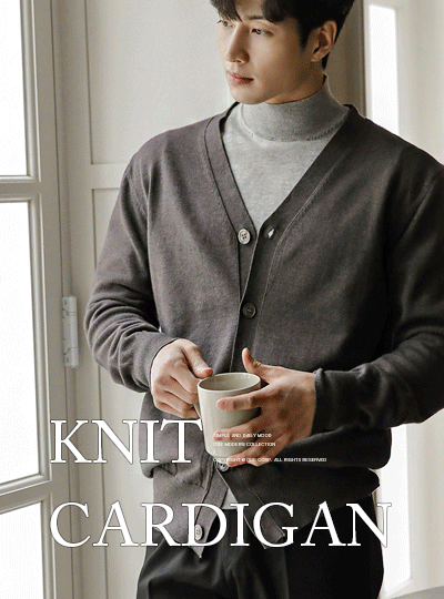 [HOMME] デーリー カシミア ブイネック シンプル ニット カーディガン