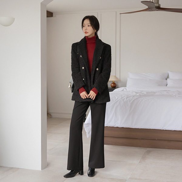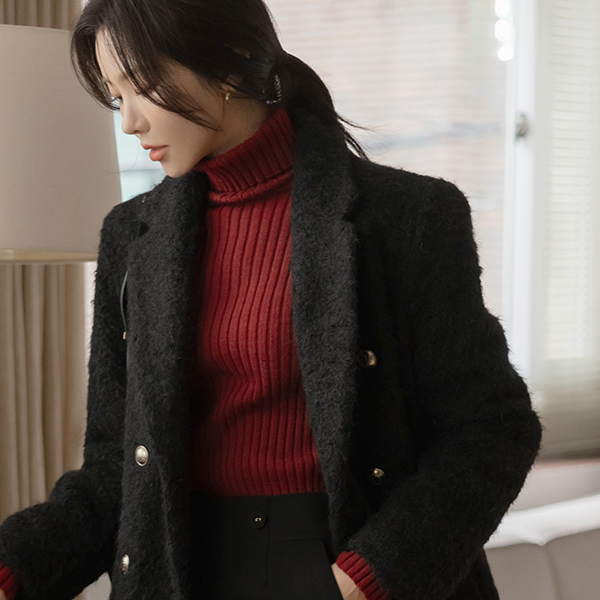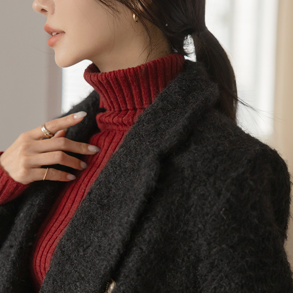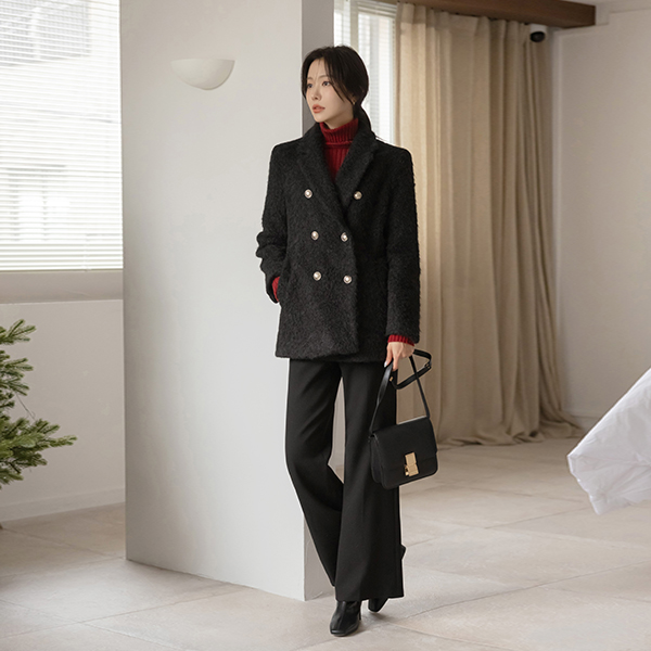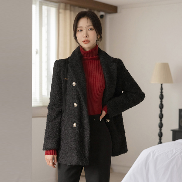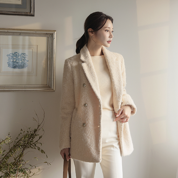 ウインター ブークレ ダブル ボタン ハーフ コート (キルティング裏地)