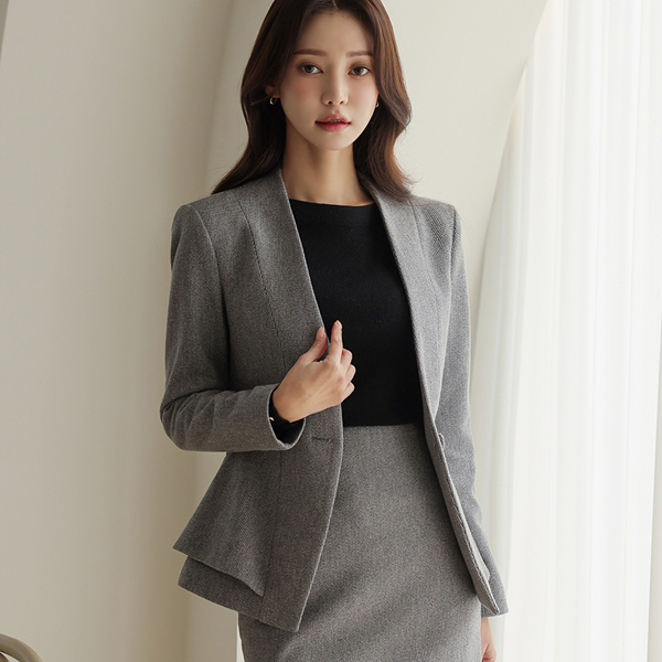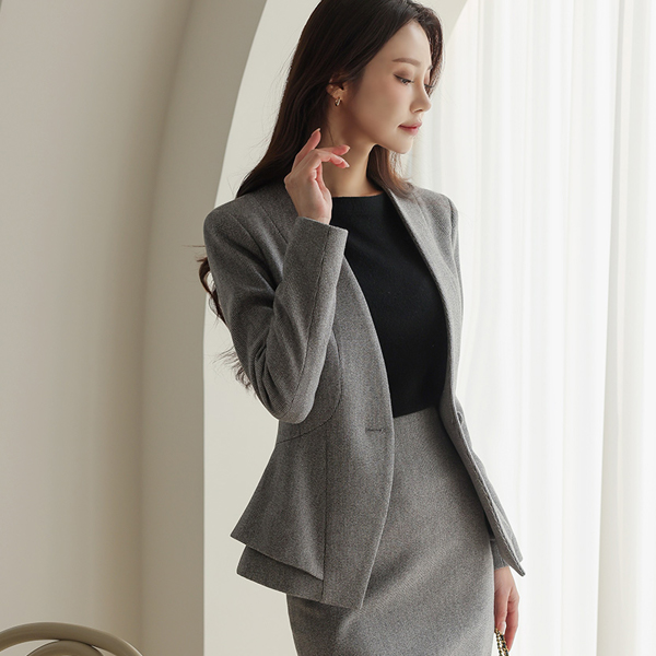 分厚い 小さなチェック 二重 ペプラム スリム ジャケット