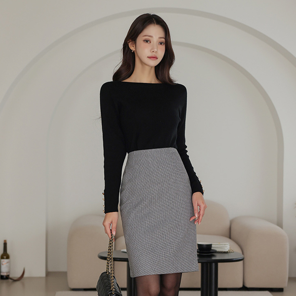 ボートネック 袖 ゴールド ボタン ニット