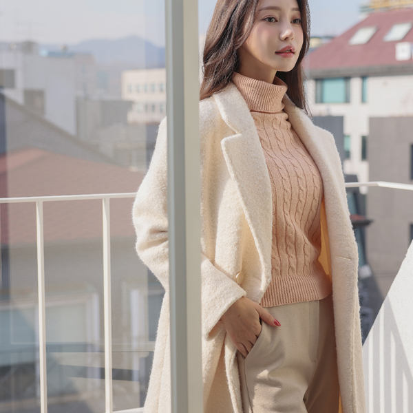 ソフト ブークレ ダブルボタン ロングコート Ⅱ