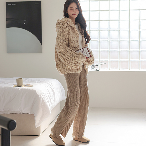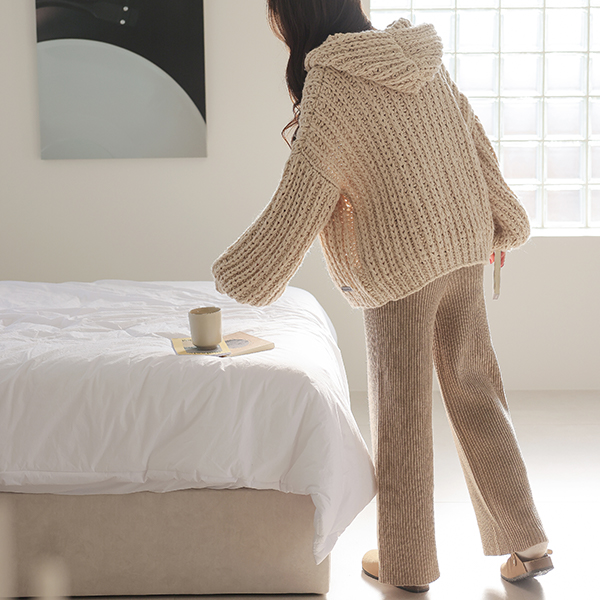 分厚い ハンドメード フード ニット ウール カーディガン