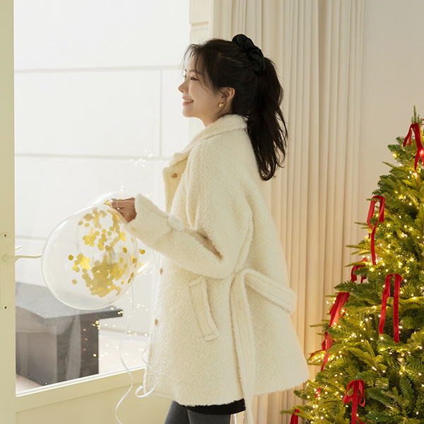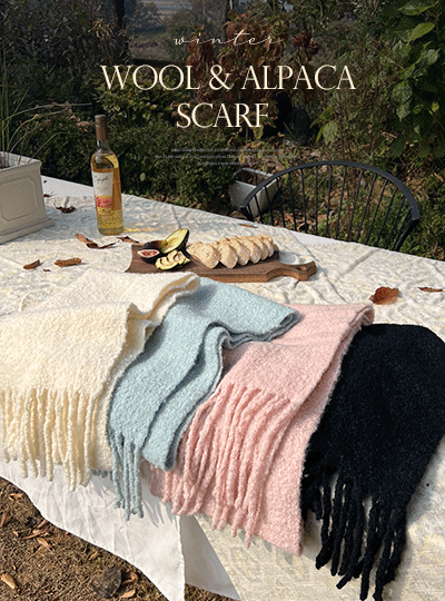 ぽかぽかした ウール&アルパカ ブークレ 無地 マフラー