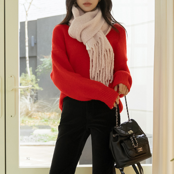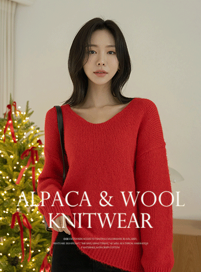ほっそりした ブイネック アルパカ&ウール カラーポイント ニット