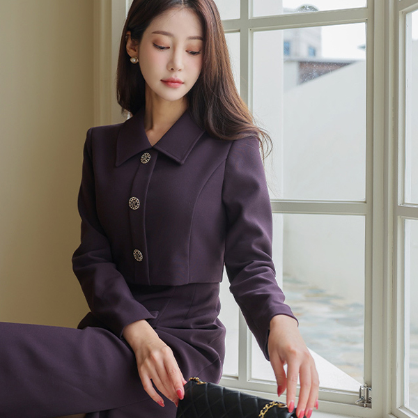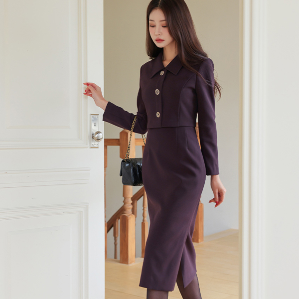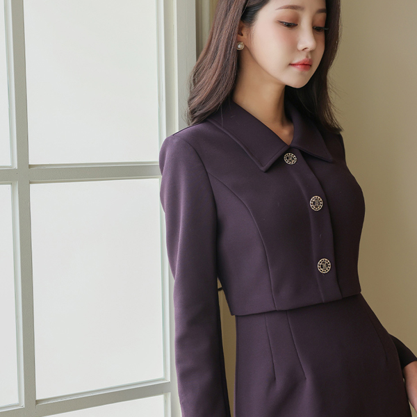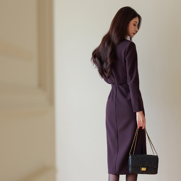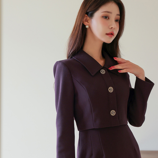 シングル カラー ジャケット レイヤード Hライン ワンピース