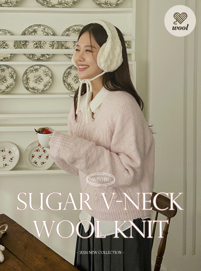 ケーブル ポンポン パタン シュガー ブイネック ウール ニット