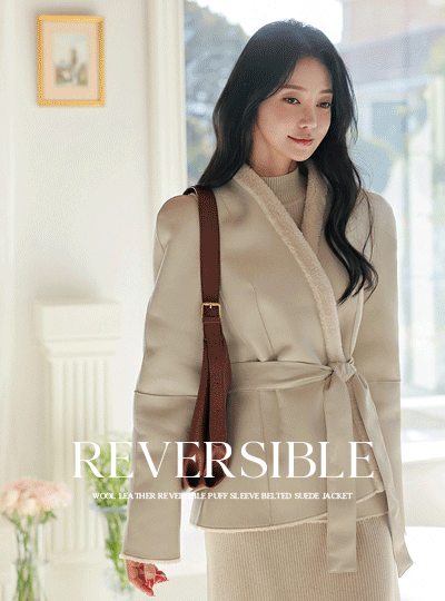 ウール 革 リバーシブル パフ 袖 ベルティード ムスタング