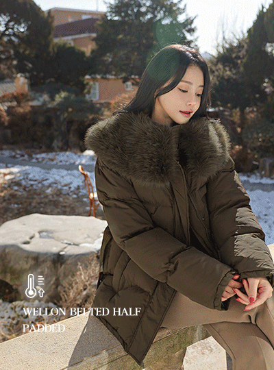ワイド ファーカラー 人造ダウン ベルティード ハーフ バディング
