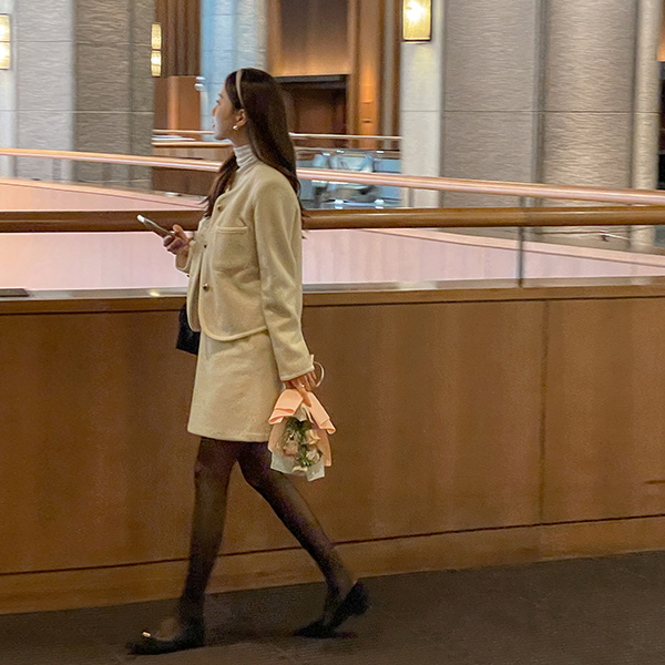 ゴールド ボタン スエード フラットシューズ