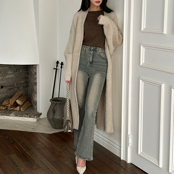 コージー ミンクファー オープン ロング カーディガン