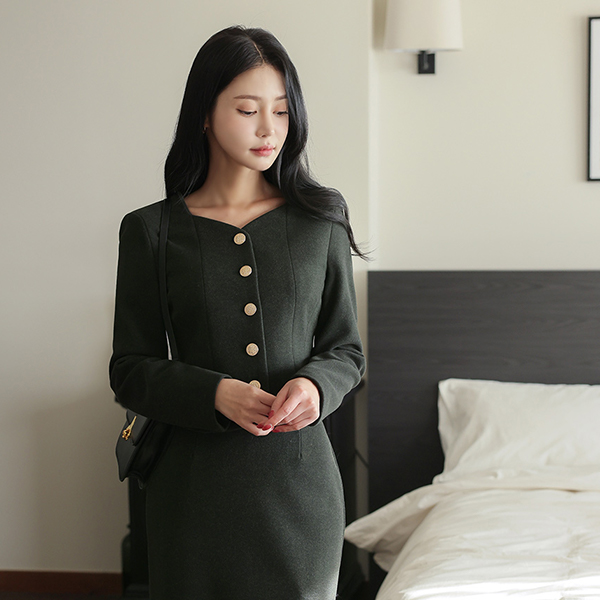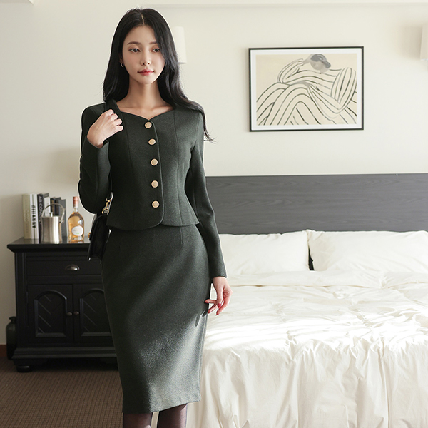 ハートネック ゴールド ボタン スリム ジャケット