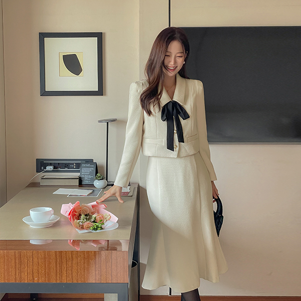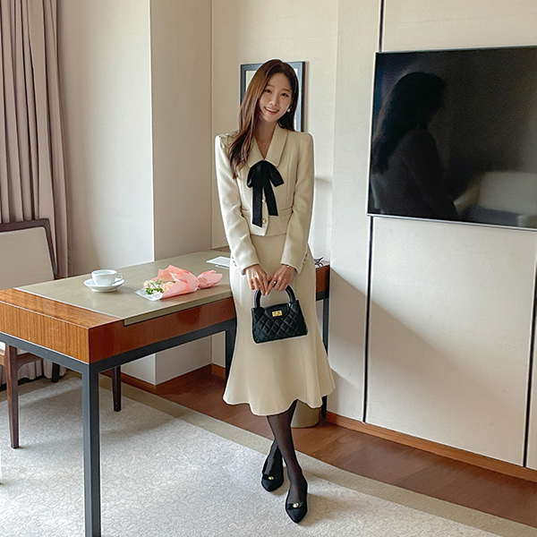 메이빈 ツイード スカーフ (セット) Set-up クロップド ジャケット