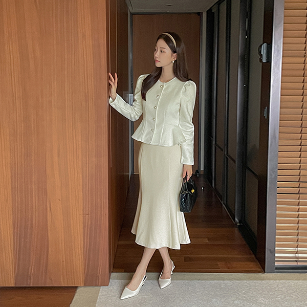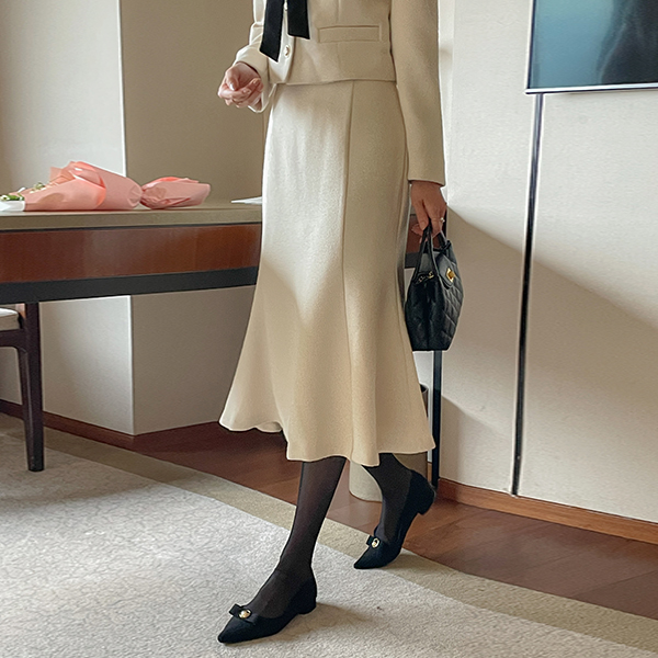 [O:neul] シャルマン ペプラム ライン 弾力 毛織 ブラウス