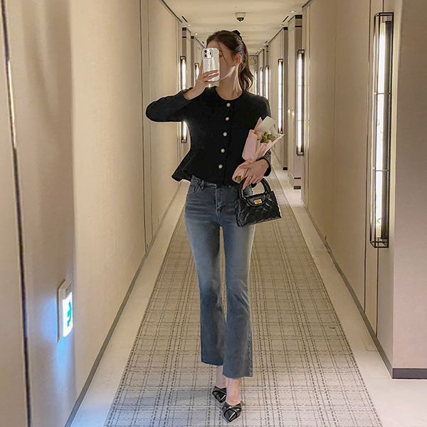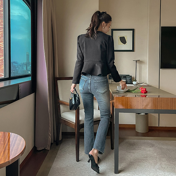 [O:neul] シャルマン ペプラム ライン 弾力 毛織 ブラウス