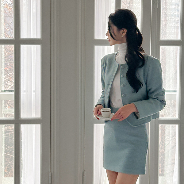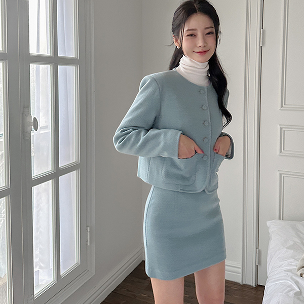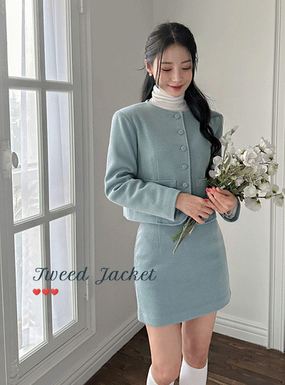 Ellin ラウンドネック ツイード ジャケット (3オンス/Quilt lining)