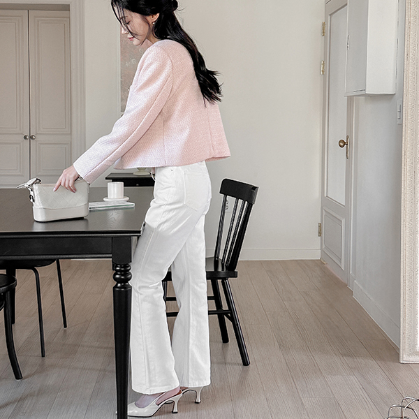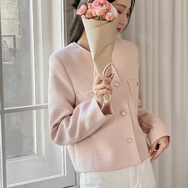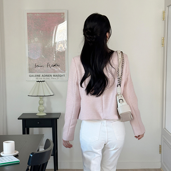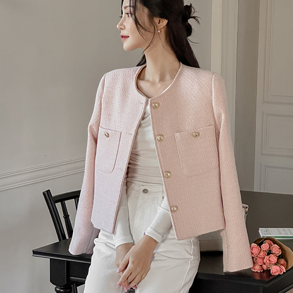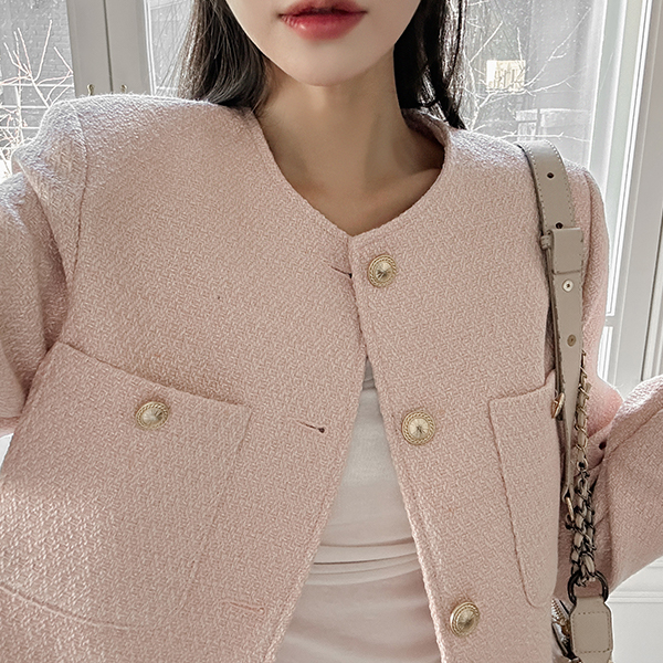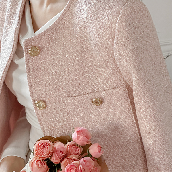 パステル カラー ラウンドネック ツイード ジャケット