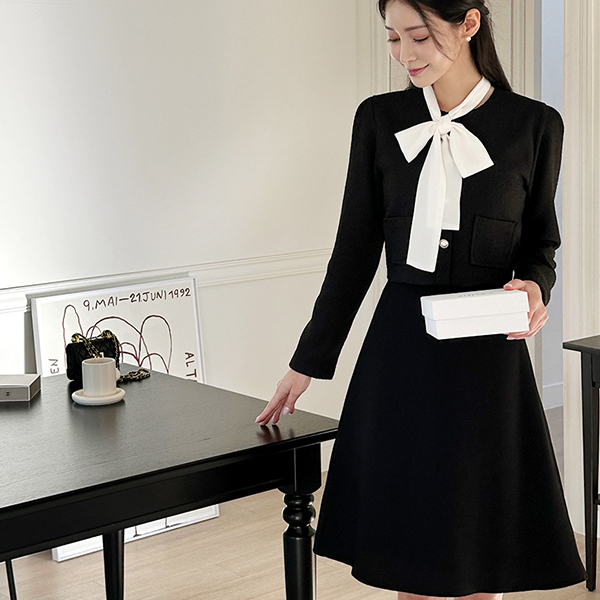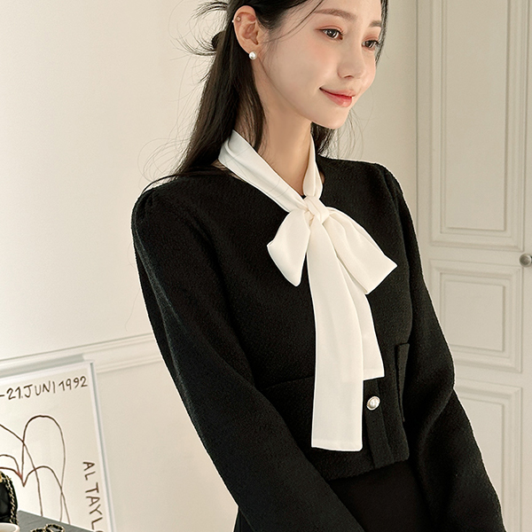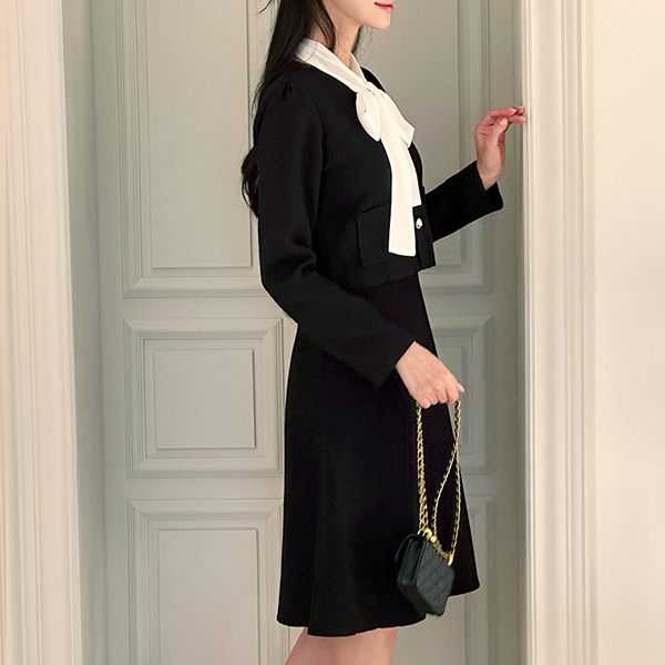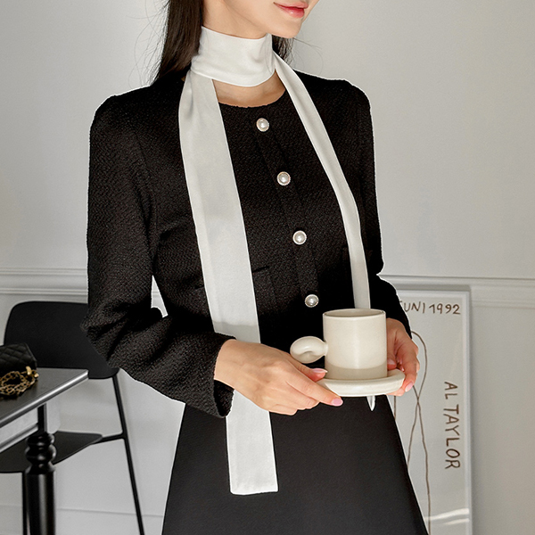 配色 スカーフ ツイード ジャケット レイヤード ワンピース
