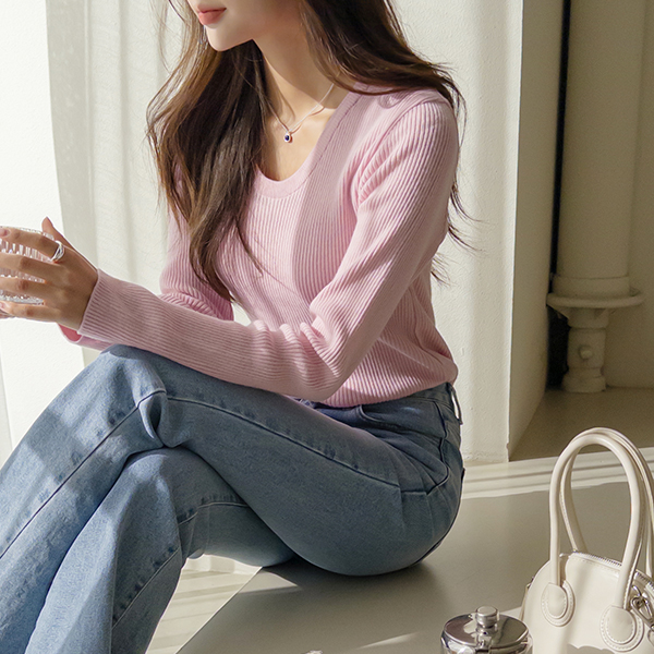 バンブー ほっそりした カラー Uネック 基本 コール天 ニット