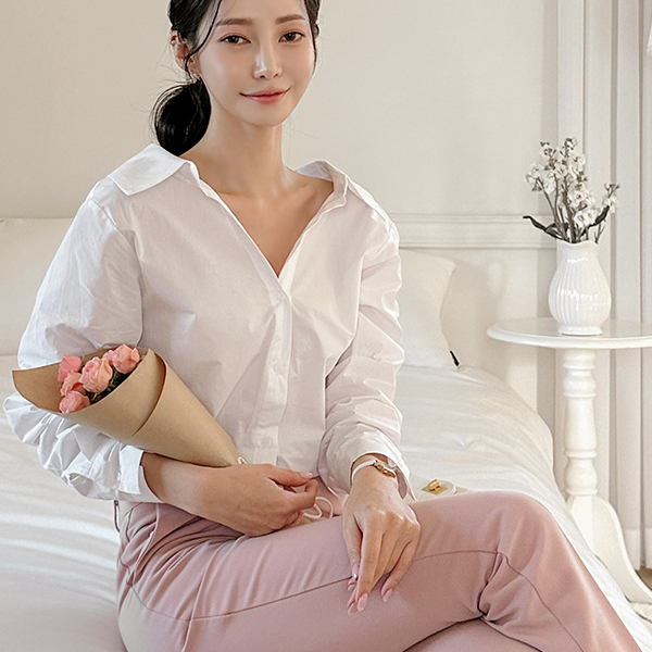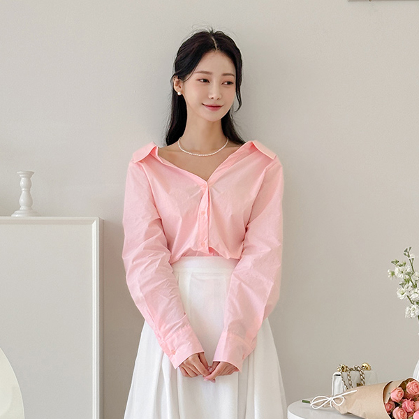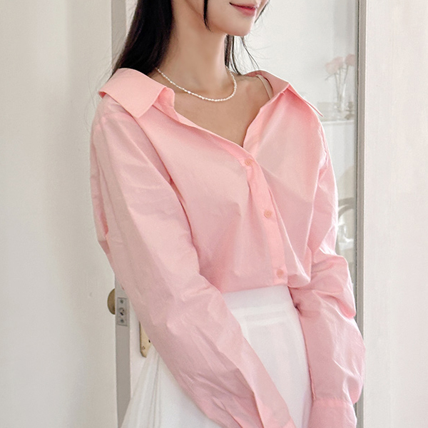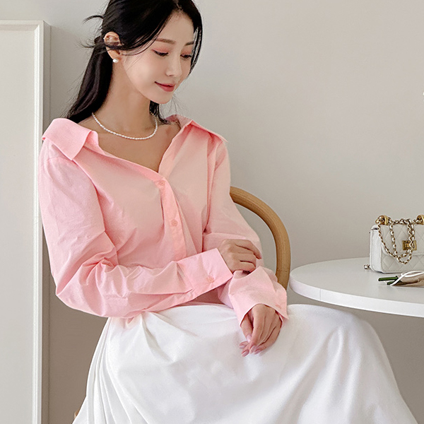 きれいなフィット カラーネック オフショルダー コットン シャツ