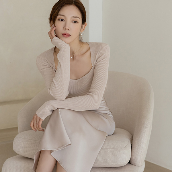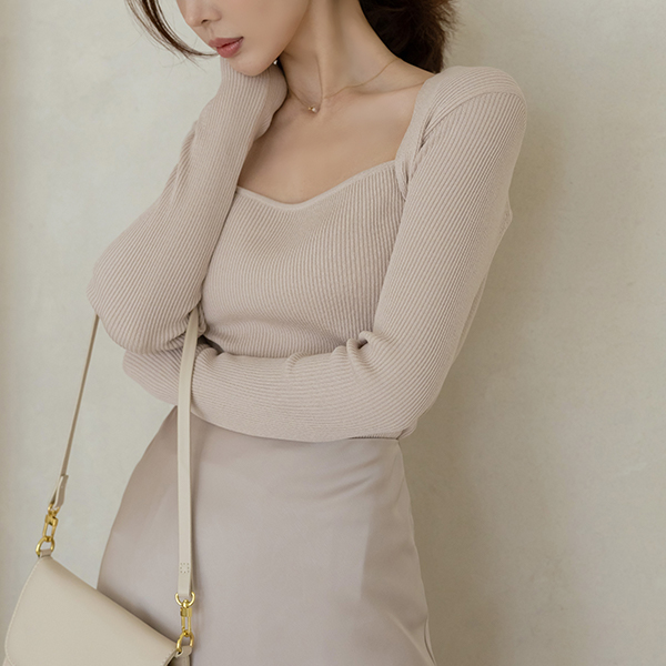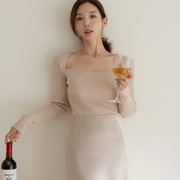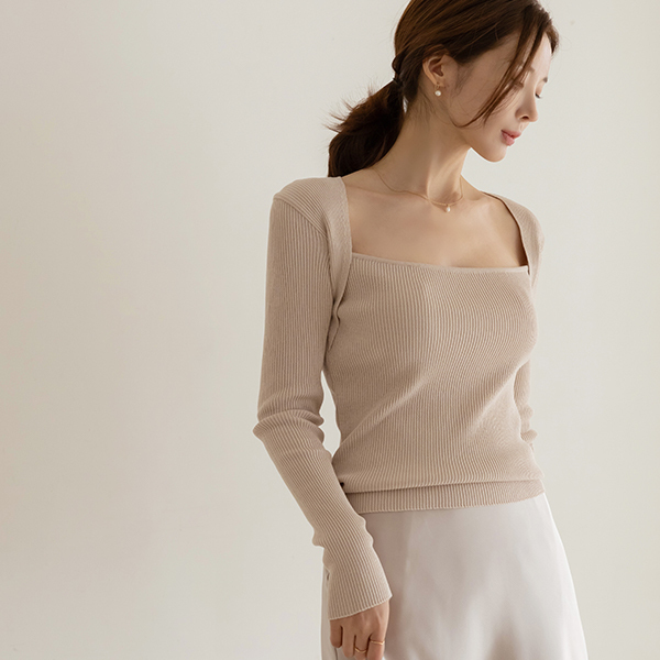 すらっと見える スクエアネック ボレロ コール天 スリム ニット