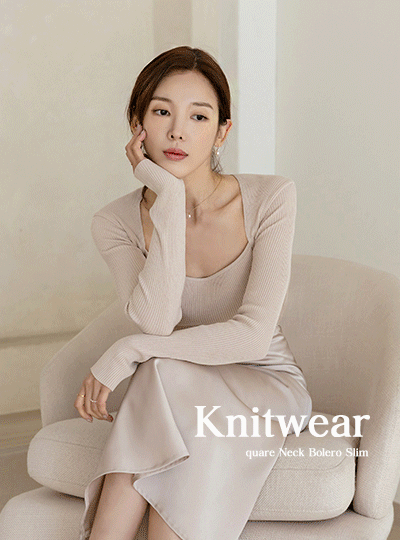 すらっと見える スクエアネック ボレロ コール天 スリム ニット