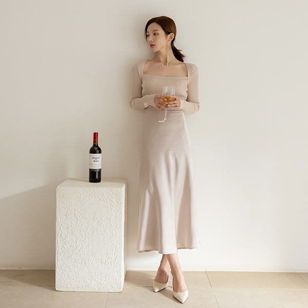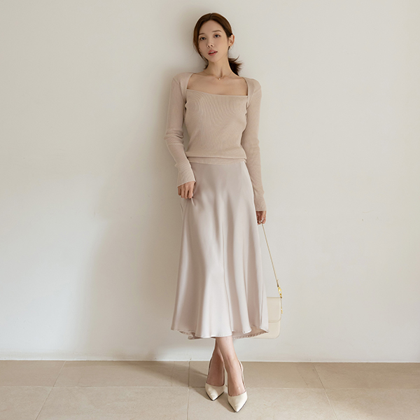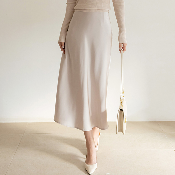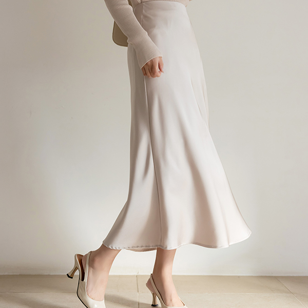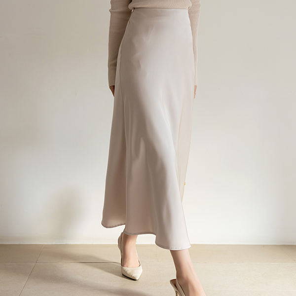 ロマンチック サテン フレア ロング スカート