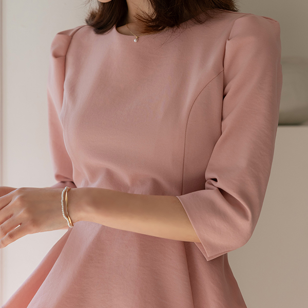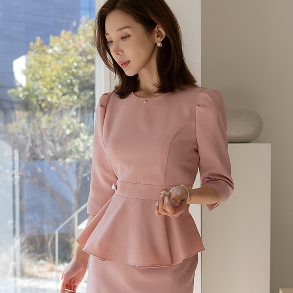 베니스 真珠 ボタン ロマンチック ペプラム ワンピース