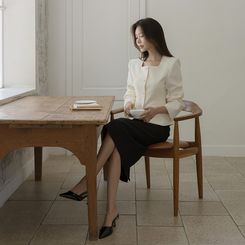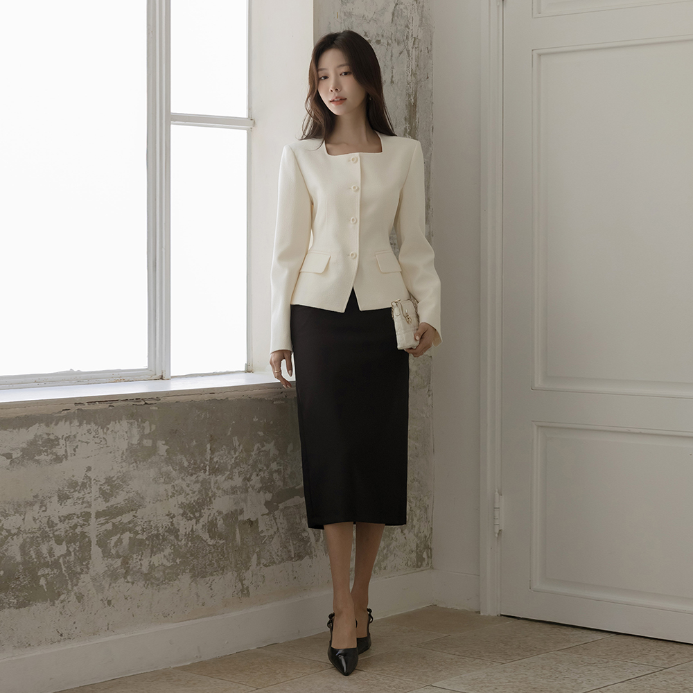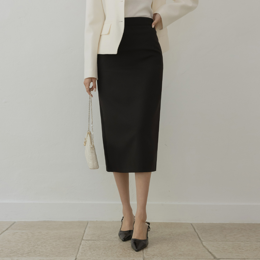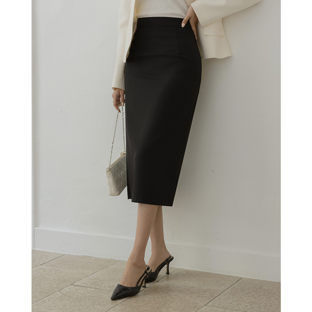 シンプル ミディライン ハイウエスト 弾力 スカート