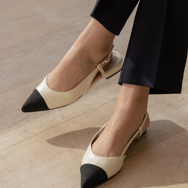 ツートーン 配色 スティレット フラット スリングバック