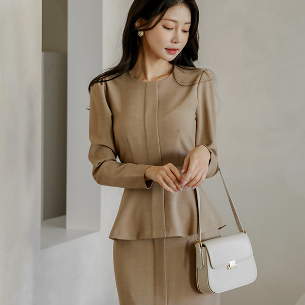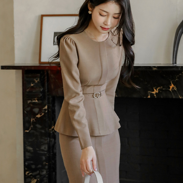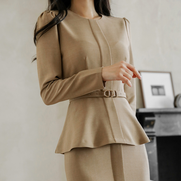 モダン チェック ペプラム ベルティード ブラウス
