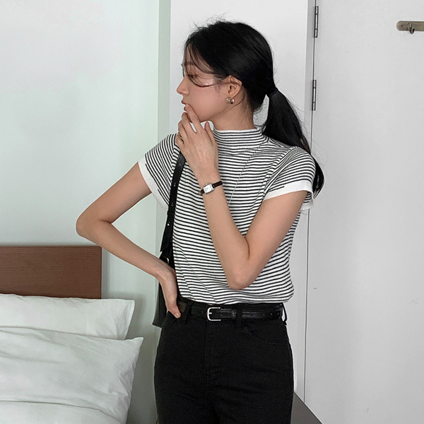 Every Day ハーフネック コール天 半そで ニット