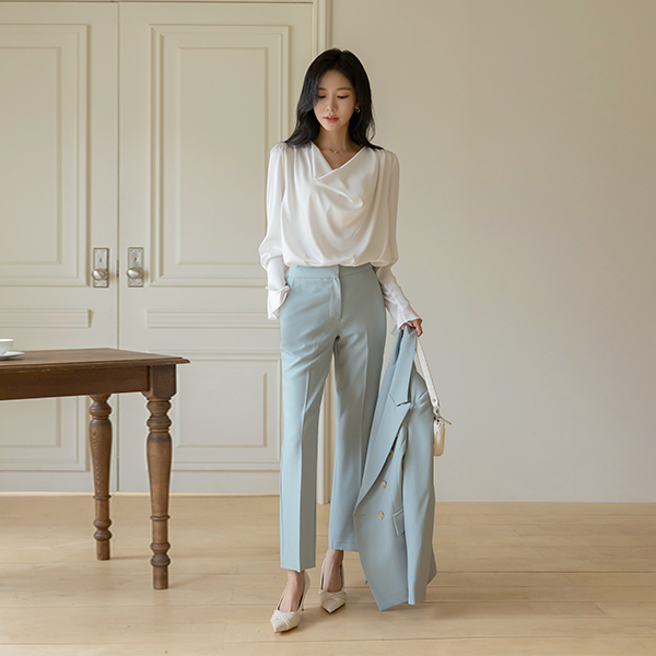 グロッシー 드레이프넥 ブラウス (スカーフSET)