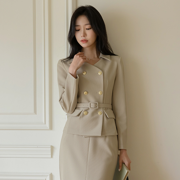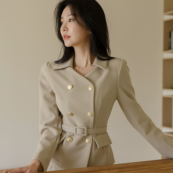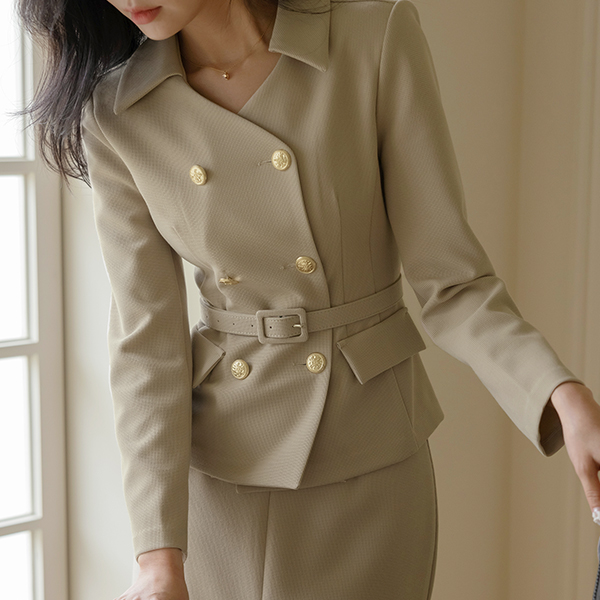 보니따 ダブル ゴールド ボタン カラーネック Set-up ジャケット