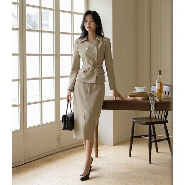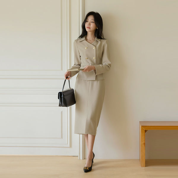 보니따 ダブル ゴールド ボタン カラーネック Set-up ジャケット