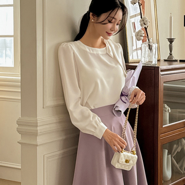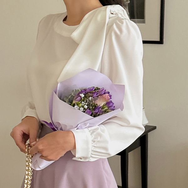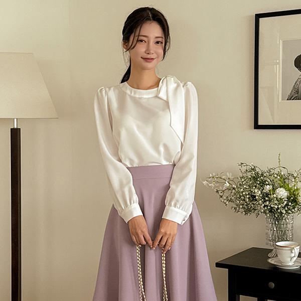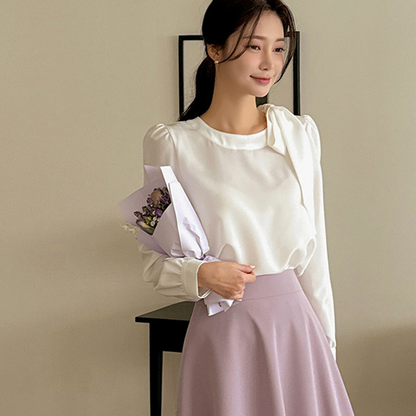 ロマンチック サイド リボン ポイント ブラウス