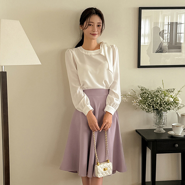 ロマンチック サイド リボン ポイント ブラウス