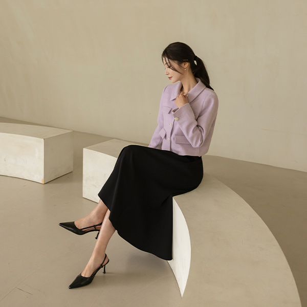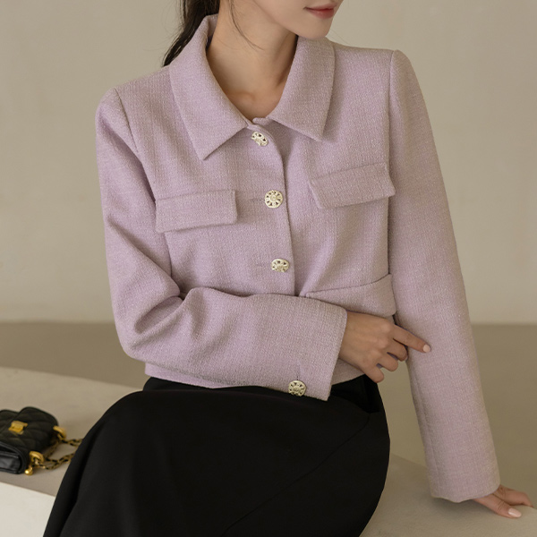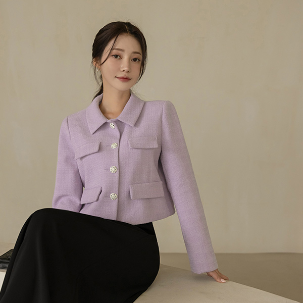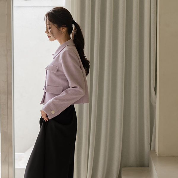 ツーウエー 配色 リボン スカーフネック ツイード ジャケット